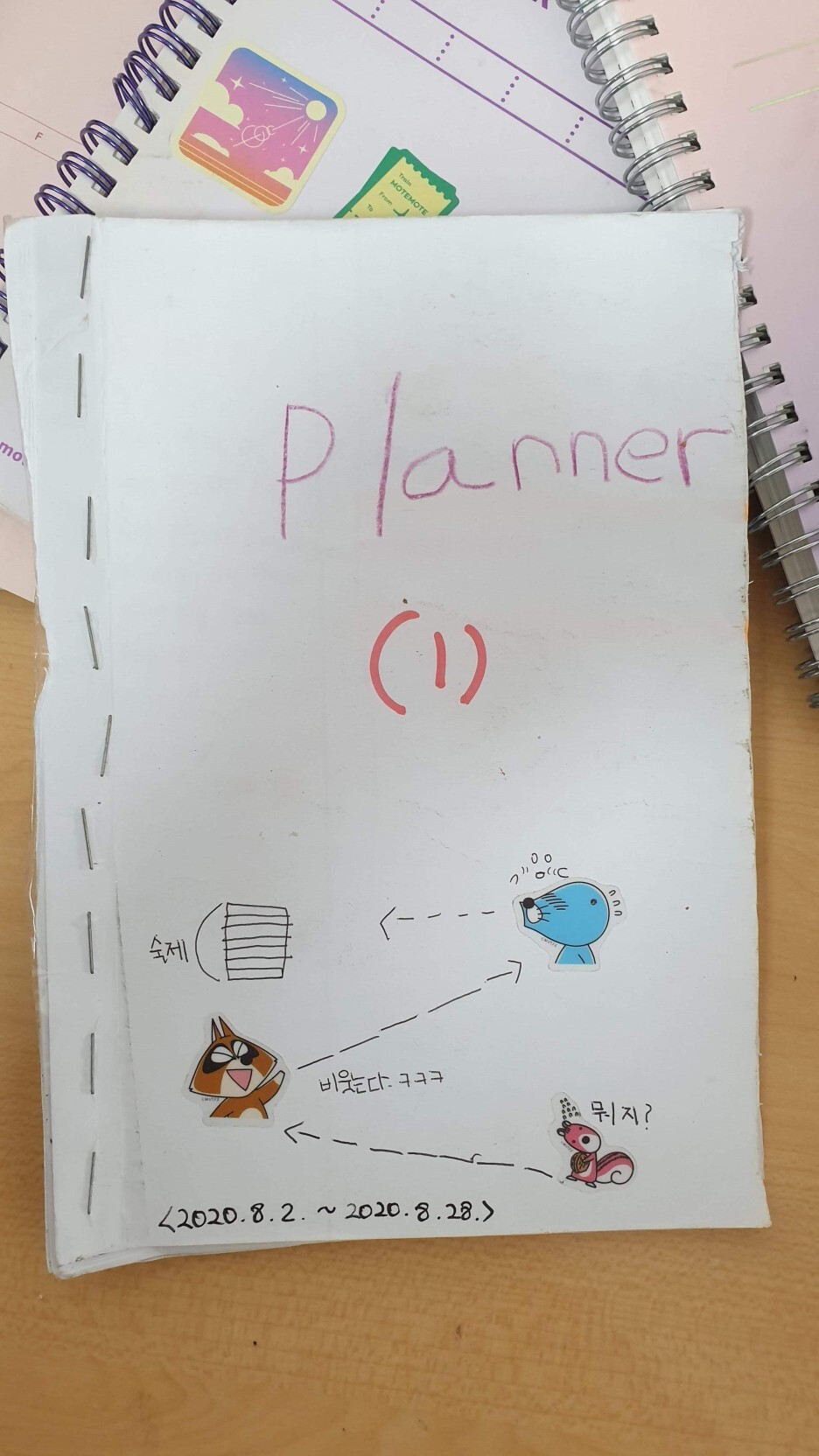 2020년 처음 플래너를 시작했어요. 플래너를 구입하기 전에 아이가 수작업으로 만든 플래너입니다. 나름 본인에게 맞는 플래너를 제작했고, 스티커와 형광펜, 다양한 컬러펜을 구입해서 만들었어요.