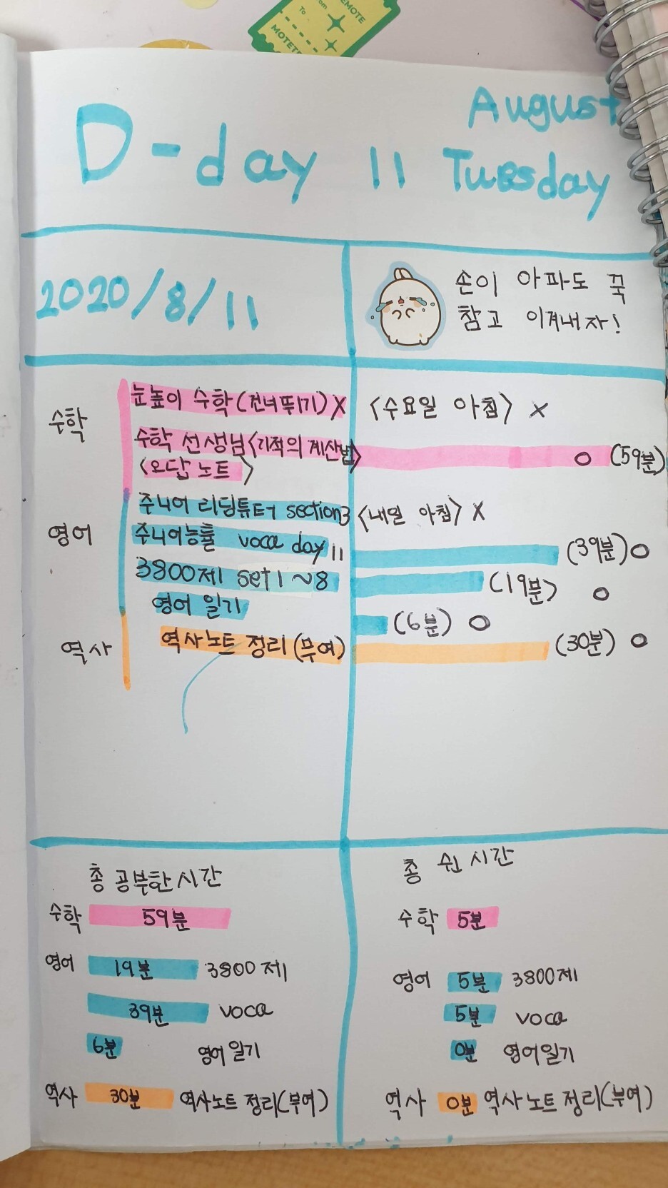 중간에 플래너를 못쓰고 지나간 기간도 있었고 다 지키지 못하는 경우도 있었지만, 초등 기간 동안에 학습계획을 세우는 습관이 들면 중간에 잠시 쉬는 기간이 있어도 중학에서 다시 시작하기도 수월하답니다.